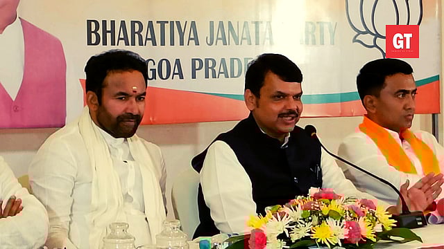 Devendra Fadnavis addressing a press conference in Panaji on Thursday