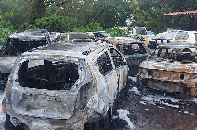 Seven cars that were parked in a garage at Dandevaddo, Chinchinim were gutted in a fire in the wee hours on Sunday.