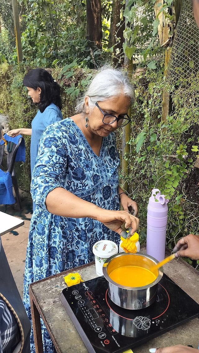 She explained various folding and tying styles to create eye-catching patterns using natural indigo dye and turmeric, transforming plain fabric into unique works of art.