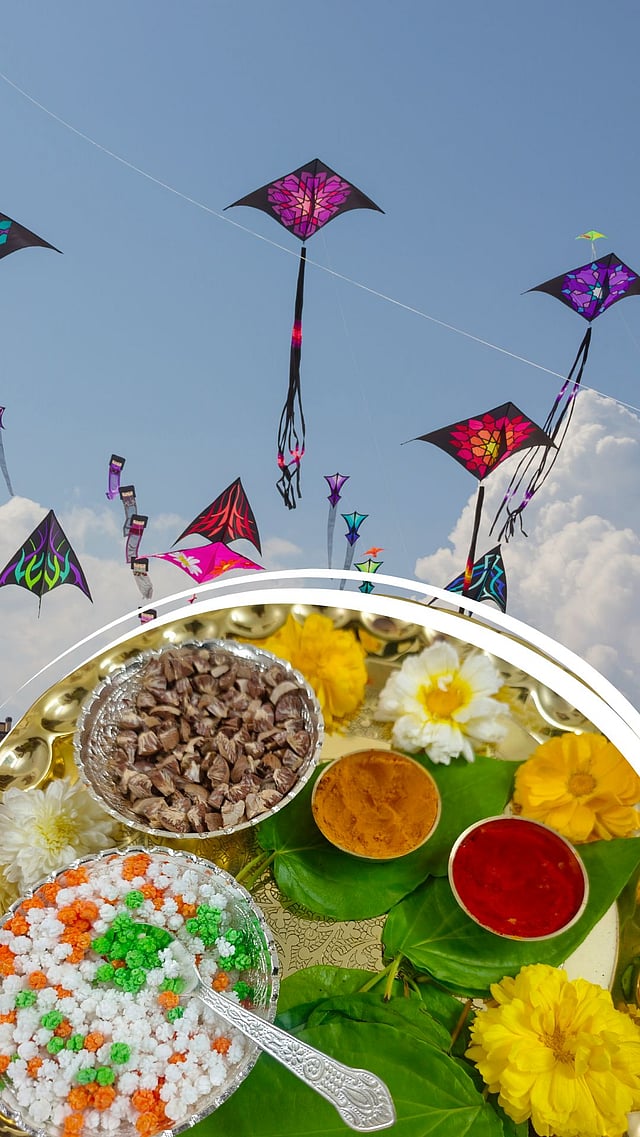In Goa, Sankranti festivities include Haldi Kumkum where Hindu families, particularly married women, visit each other's homes, apply haldi-kumkum (turmeric and vermilion), exchange gifts, and distribute sweets.