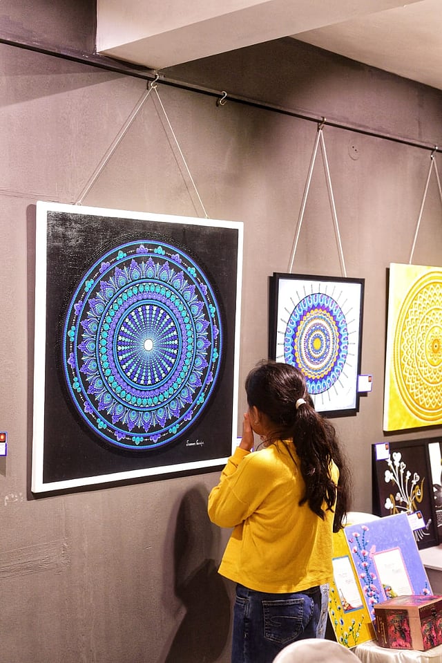 CIRCLES OF CALM An ongoing exhibition-cum-sale, Manchakra, at Ujwal Art Gallery, Art Street, Vagator, North Goa, is celebrating diversity with symmetry..KEEN TO KNOW The exhibition was inaugurated at the hands of Padmini Foundation President, Sulakshana Sawant, who evinced keen interest in the artworks..ARTIST & HER ART Artist Sweta Gaitonde's Mandala collection is also showcased at the exhibition. .TRUE CALLING Goa's Suvarna Gaonkar's mandala artwork integrates a variety of colours and designs, which explore the inner depths of the being..BLACK & WHITE In the Mandala designs, one can find beauty in symmetry and the intricate patterns and dots are carefully crafted keeping in mind the sacredness of the art..IN HARMONY Some of these Mandala artworks bring to the fore the spirituality quotient of the artists..DO VISIT The exhibition is open till December 19, 2023, from 11 am to 9 pm..NEXT: Wah! Zakir Hussain at Serendipity in Goa.SEE MORE