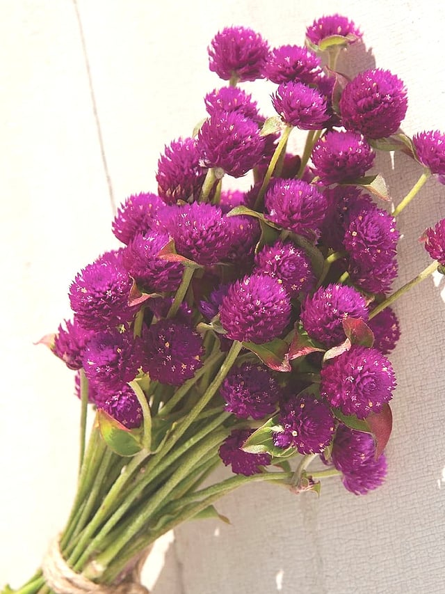 Also known as Globe Amaranth or Button flowers (Gomphrena globosa), the plant is fairly drought resistant and its flowers are used to make garlands in Goa.