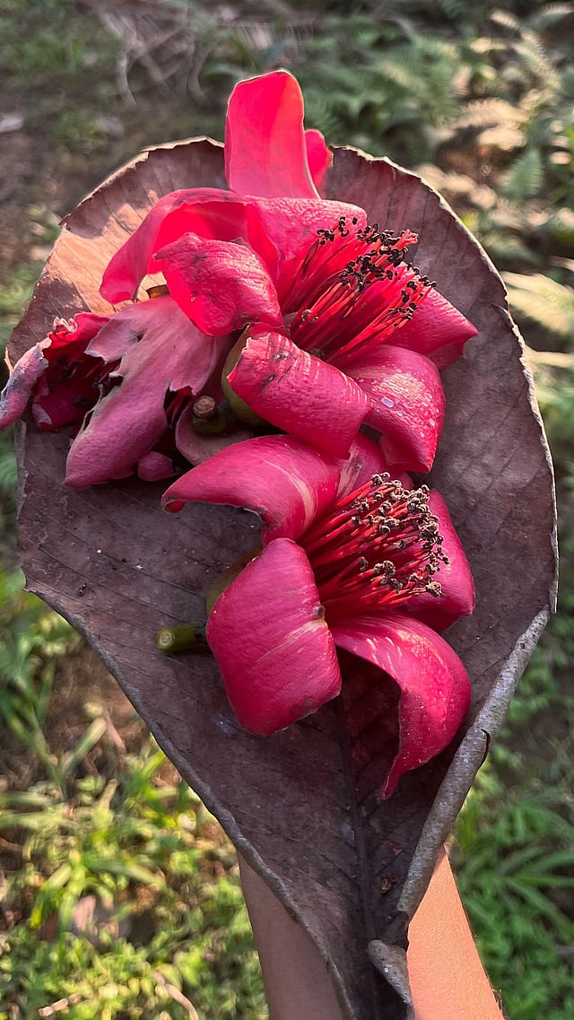 The Savar’s flowers are nothing short of spectacular. Bright red, with thick and velvety petals, the centre of the flower, with its pollen-laden stamens, has a delicate shape reminiscent of a shuttlecock.