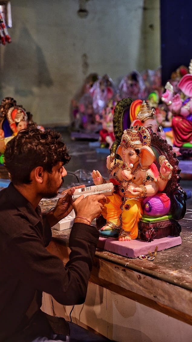 Shubham started using this innovative method of idol decoration eight years back. And, it's captured the imagination of people. This year alone, he has received around 250 idols to embellish.