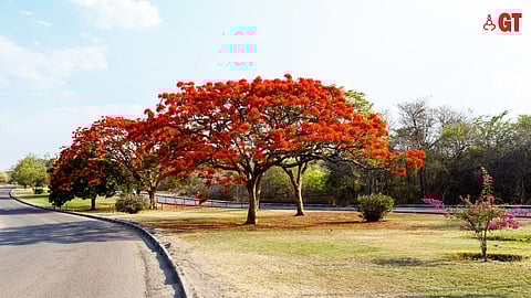 These trees, with small tamarind-like leaflets, produce golden flowers for most part of the year. The ground below the tree has a carpet of golden flowers that are a sight to see from end February till the Mayflowers, or gulmohur, makes their appearance to paint the town red.