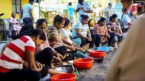 Local women can be seen emerging from their houses clutching an 'adoli', the traditional tool used for scraping fish. This unusual scene piques your curiosity, drawing you to follow their path. Their hurried steps lead you to a single destination – a house where you see several other women seated in the courtyard, cleaning clams.