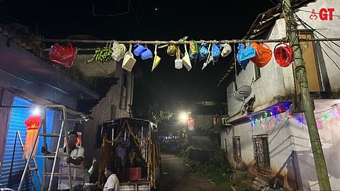 “The offerings have evolved with time, and sometimes, even cash (in envelopes) is tied and later auctioned off,” he adds. One can even find items like buckets, tumblers and also plastic chairs on this toran.