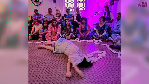 Her well thought out and engaging performance in a packed room at the Centro de Lingua Portuguesa led guests through a series of interventions. Her body became the medium to personify the Mhadei, exploring her flow through the ‘Dance of the River’, even mouthing a song on behalf of the river ̶ “I’ve been in the waters around your sons and daughters in your wombs. I know what it's like to live underneath your skin, I know where your bones have been.”