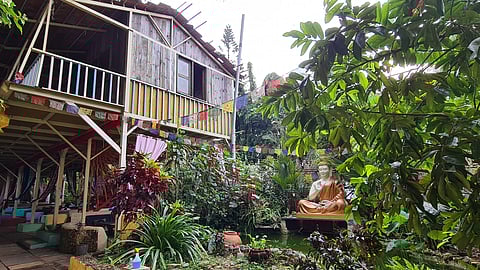 The seating area is vast with floor seating on one side and bamboo chairs on the other. The design of the cafe also indicates proximity to Hindu mythology with each floor-seating booth having a painting of Hindu gods and goddesses and another shrine of Shiva under a tree which they carefully built the cafe around.