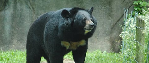 It is a medium-sized, sharp-clawed, black-coloured bear with a light brown muzzle and a pale yellow crescent on the chest