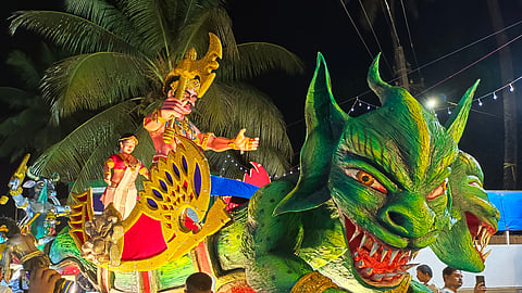 Despite these lacunae, the energy was positive on the first day of the festivities. Despite the inconvenience, a large number of revelers enjoyed the floats which were based on the Puranas (ancient Hindu scriptures).
