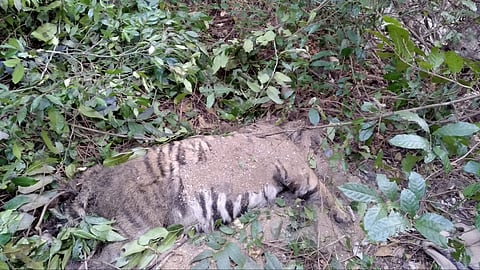 VALPOI: A carcass of tiger was found inside the Mhadei wildlife sanctuary adjacent to Golavli village in Sattari taluka on Sunday. It was found in a decomposed state near the natural water source, about two-kilometres away from human habitation. Deputy Conservator of Forests, Vikas Dessai said, "As soon we got the news, our entire team rushed to the spot and we found a fully grown three to four-year-old tiger carcass from the forest inside the Mhadei wildlife sanctuary in a decomposed state. The cause of death could be not ascertained as the post-mortem will be conducted on Monday (January 6) morning. We have booked an offence and further investigation is on." Additional Conservator of Forest Nandkumar Parab, Range Forest Officer (RFO) Villas Gawas and environmentalist Rajendra Kerkar also visited the spot for a panchnama. Villagers suspect that last week two cows were killed by the same tiger. Last year, the office of the range forest officer had spotted the tiger in the Mhadei wildife sanctuary as it was captured in the cameras fitted in the forest. It is reportedly learnt that tigers travelling from nearby Bhimgad and Hanshi-Dandeli wildlife sanctuaries. According to environmentalist Rajendra Kerkar, the tiger must have died six to eight days back and it was seen on Sunday by the villagers who had gone for some religious rituals performed inside the forest. Since last two years, around five tigers have been sighted in Mhadei wildlife sanctuary, he said adding that the forest department should have deployed tiger protection teams there to take care of the big cats in these areas. A few years ago the forest department had started the exercise to establish the presence of tiger in the wildlife sanctuaries by using camera trapping method after the Union Ministry of Environment and Forest (MoEF) asked the Goa government to submit its proposal to declare Mhadei wildlife sanctuary as a tiger reserve park.
