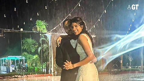 She adds, “Initially, like the other guests we too took shelter under a shade, I saw people covering electronic items, our wedding cake getting soaked. But we realised that instead of hiding from the rain let’s embrace it. My dress was soaking wet, but I didn’t think twice. I’ll always remember it.”