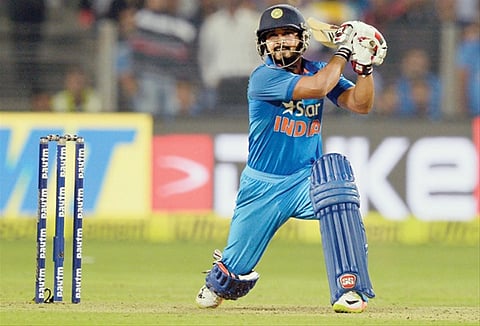 PUNE: One has to do something exceptional to earn praise from Indian captain Virat Kohli. And, on Sunday at the Maharashtra Cricket Association Stadium in Gahunje, Kohli had just one word “Outstanding” to describe local batsman Kedar Jadhav’s knock of 76-ball 120 in the first ODI against England. CALCULATIVE INNINGS Describing it as one of the best calculative innings he had seen, Kohli said that he (Jadhav) put a lot of pressure into the spinners. His 150 strike rate was outstanding. Some of the shots he played, he told it was instinctive. I could not believe,” Kohli said at the post-match press conference. Kohli himself scored 122 off 105 balls and and Jadhav made 120 for his career-best score as the two smashed hundreds to help India chase down the stiff target of 351 for a three-wicket win in the first ODI. “Just to have another guy who is willing to do from any situation, to keep pushing, knew how exactly to bat on this pitch which was even better to bat on in the second innings. His shots were all clean, not slogs, and that’s way to bat at number 6. Was glad I was out there with him,” gushed Kohli. Kohli, for whom it was his first day in office as India captain in all three formats of the game, said Jadhav was disheartened that he could not get the team past the victory line against New Zealand in the previous ODI series. “He was disheartened versus New Zealand that he could not get the team across the line. I told him there was no point thinking what you could have done and told him to keep pushing hard,” said Kohli. COUNTER-ATTACKING ENGLAND Asked how he and Jadhav tackled what looked like a hopeless situation with four top batsmen back in the hut for a mere 63 runs in the 12th over, Kohli said they decided to counter-punch their way. “We spoke about how to tackle that situation and decided it the best way was counterattack. No wickets had been lost to good balls, we committed errors and the wicket was better to bat in the second innings.” The ball travels very very far. We could hit sixes to put pressure on the opposition. It’s one of the best partnerships I have been part of. We have chased 350 before but not from 63/4,” said the captain. UNBELIEVABLE SHOTS Kohli admitted that some of the shots he himself had played during matches made him wonder afterwards how he had done them. “I can recall many moments when I felt I did not do this, don’t know how it got executed. If you are focused on the goal, the target you want to achieve, and you are looking at the team’s interest all the time, you end up playing shots you don’t believe you are capable of achieving. Once you got the momentum you can pull off shots which you won’t believe. It’s just one of those things with all international batsmen,” he added. Just to have another guy who is willing to do from any situation, to keep pushing, knew how exactly to bat on this pitch which was even better to bat on in the second innings. His shots were all clean, not slogs, and that’s way to bat at number 6. Was glad I was out there with him. — Virat Kohli